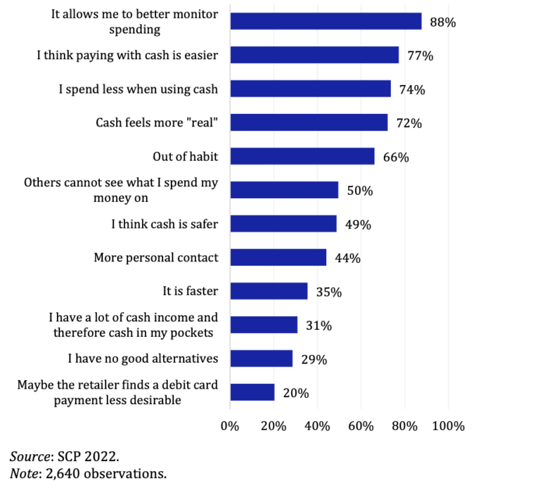 Graph 1. Netherlands: Respondents’ Reasons for Preferring Cash to Debit Cards, 2023 (shares)