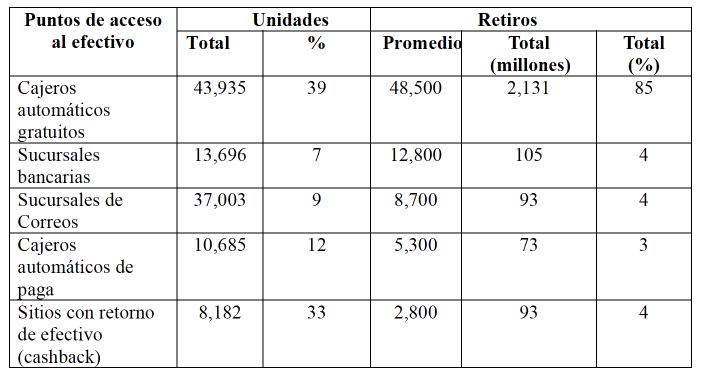 Cuadro 2. Reino Unido: Puntos de acceso al efectivo y reintegros, marzo de 2020