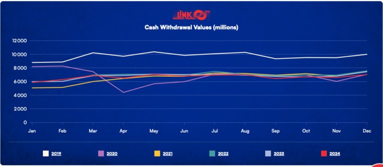 Data from Link, the UK ATM network, reveals that the total volume of ATM cashMoney in physical form such as banknotes and coins. More withdrawals has remained stable over the past four years (2021-2024), following a sharp decline in 2020 due to the Covid-19 pandemic. Notably, these figures do not include withdrawals made by customers at their own banks’ or building societies’ ATMs.